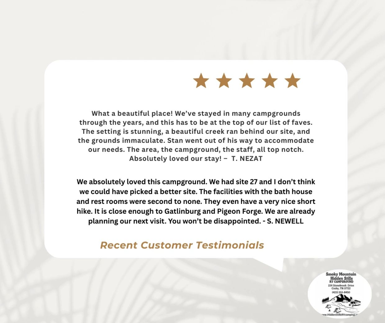Nestled in the serene town of Cosby, TN, Hidden Stills RV Campground offers a peaceful retreat surrounded by the natural beauty of the Great Smoky Mountains. Perfect for RV enthusiasts and nature lovers, our campground provides spacious, well-maintained sites with modern amenities to ensure a comfortable stay.